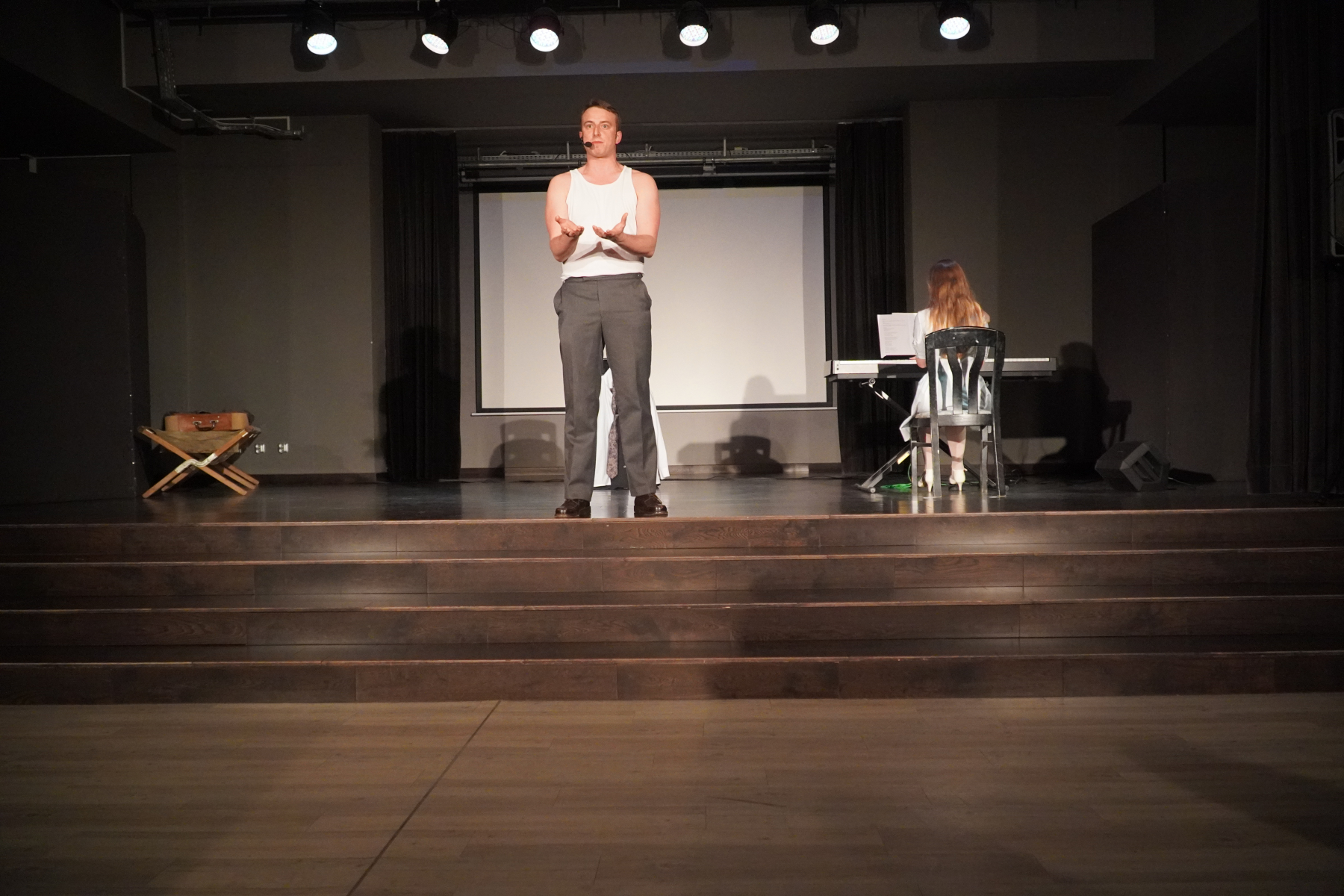 Spektakl Baczyński był kameralnym, ale niezwykle intensywnym doświadczeniem. Opowieść o młodości, miłości i wojnie snuła się poprzez autentyczne wiersze poety, uzupełnione współczesnymi monologami i subtelną muzyką fortepianową na żywo, wykonywaną przez Viktorię Koshubę, której gra wprowadzała widzów w emocjonalny świat przedstawienia.