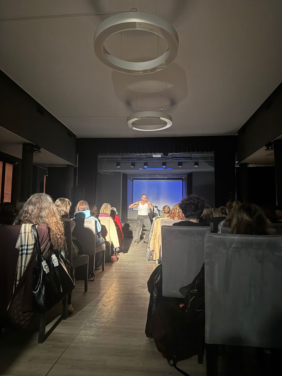 Już od pierwszych minut było jasne, że twórcy spektaklu stawiają na coś więcej niż tradycyjną formę. Konrad Stein – aktor i twórca widowiska, niemal całkowicie zrezygnował z dystansu, jaki zwykle dzieli scenę od publiczności.