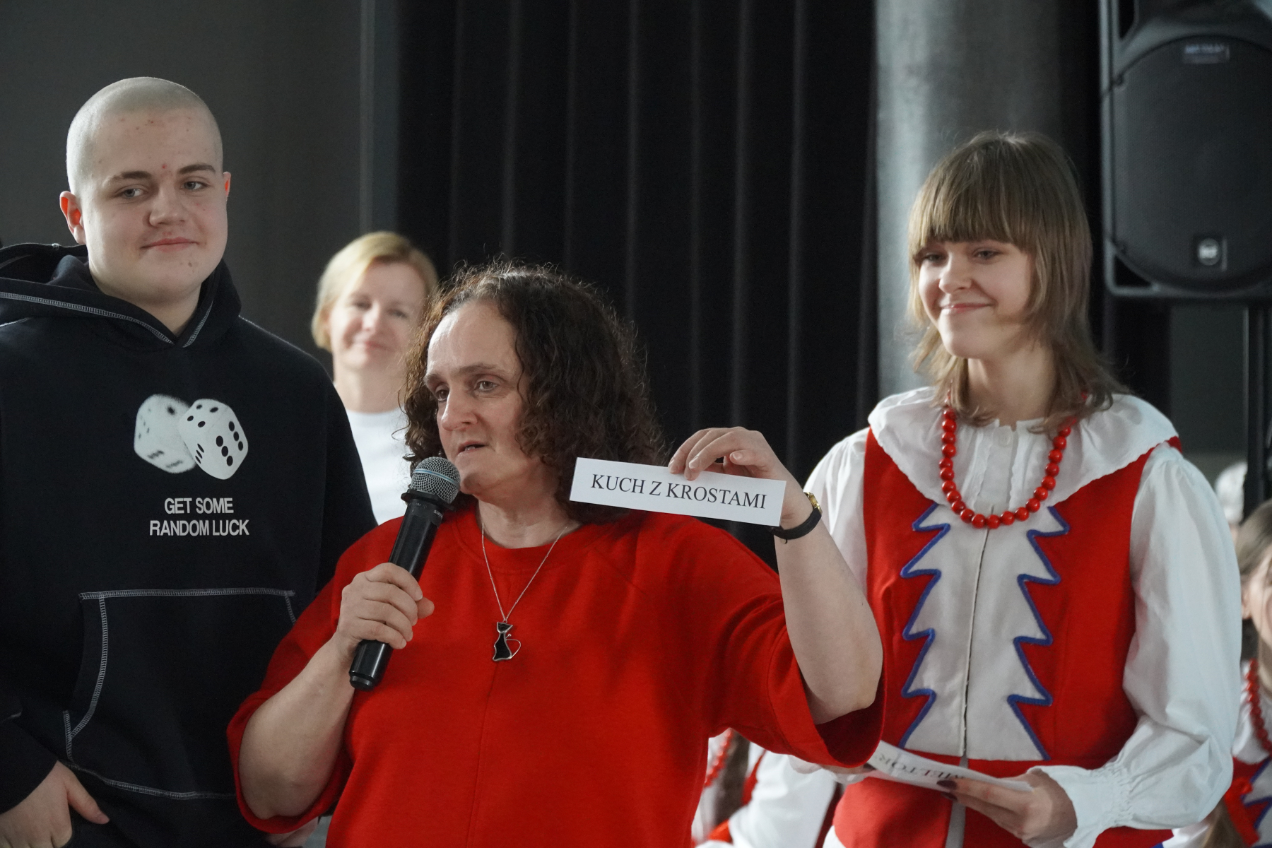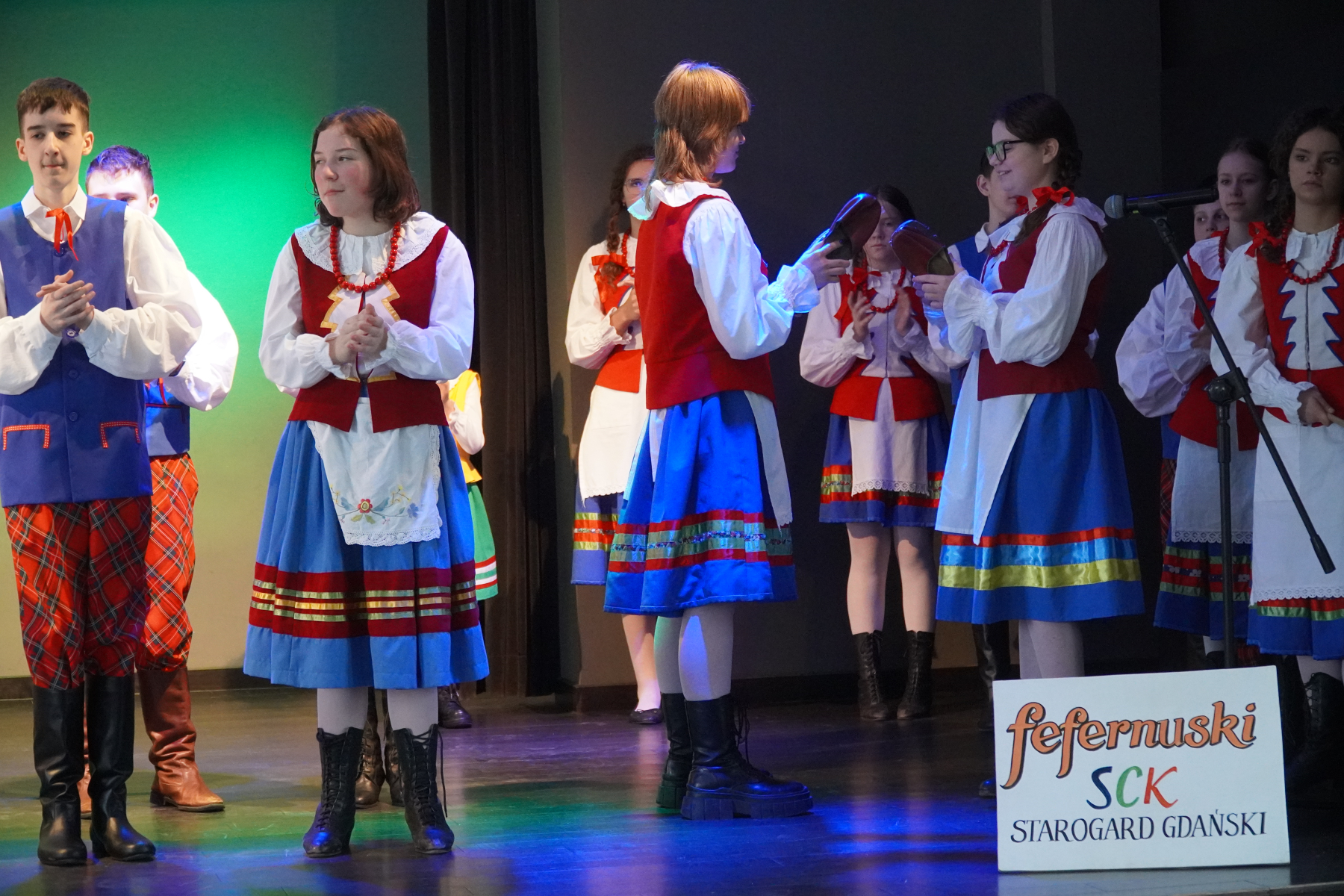 Spotkanie poprowadziła Kapela Kociewska Fefernuski pod kierunkiem Aleksandry Miczek, zapraszając uczestników w interaktywną podróż po kulturze naszego regionu. Publiczność miała okazję zmierzyć się ze znaczeniem dawnych słów, takich jak frysztyk, podkurek czy wieczerza. Każde z nich odsłaniało fragment codziennego życia dawnych mieszkańców Kociewia – ich zwyczajów, smaków i rodzinnych tradycji.